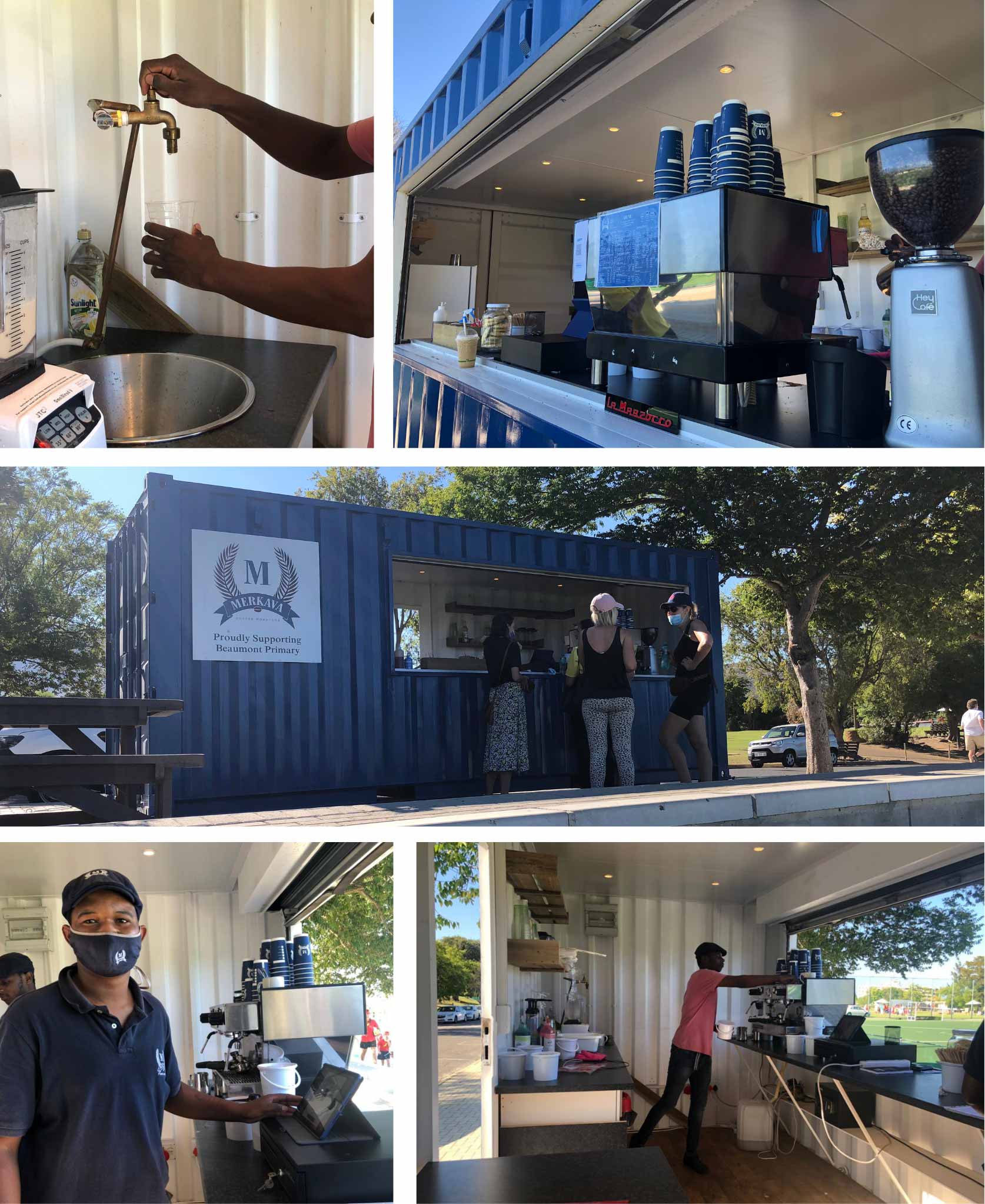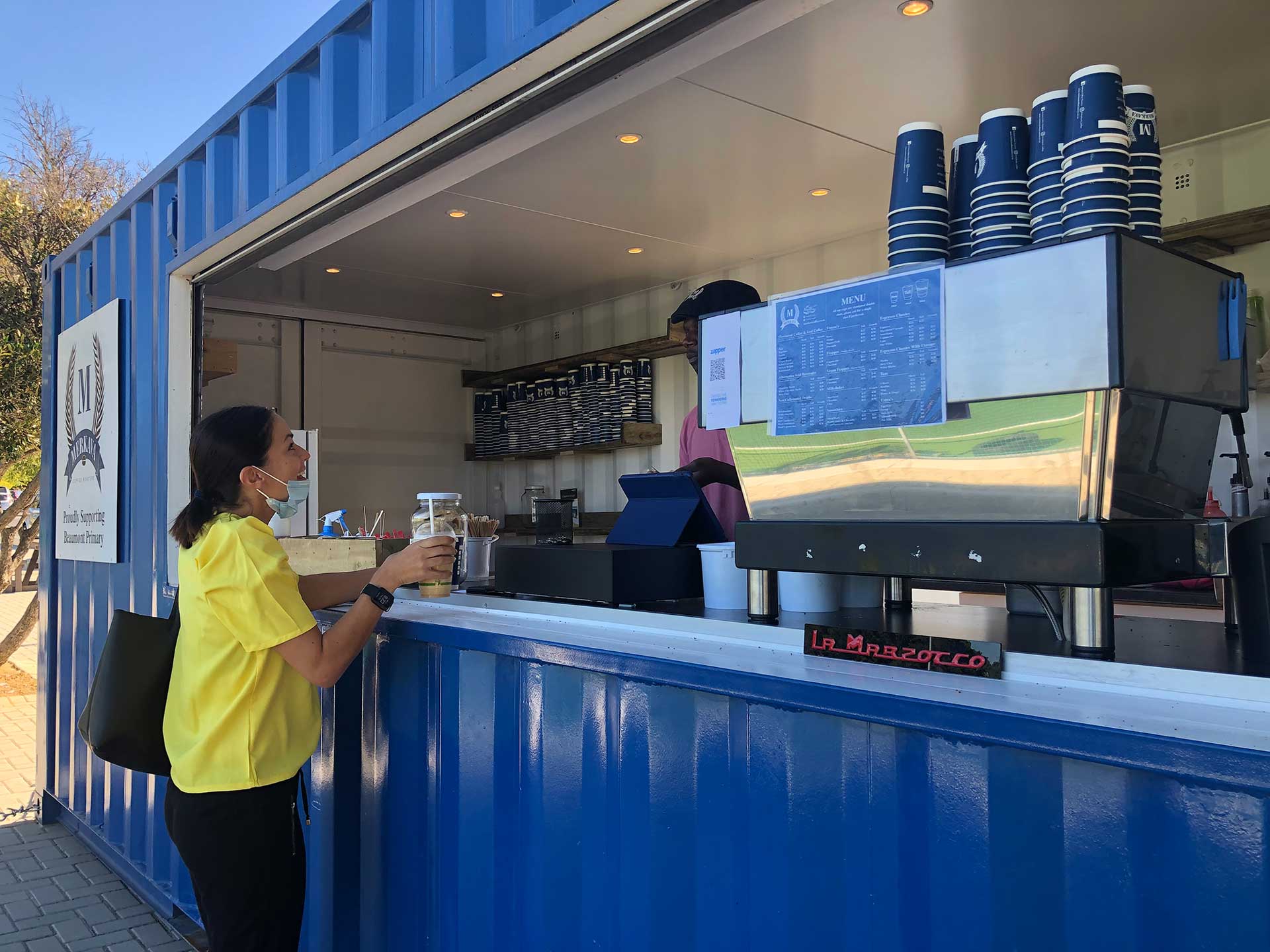 In the heart of Somerset West, situated next to Beaumont Primary Schools’ Astro sports fields, boasts a beautiful blue Big Box Container. This container is home to local barista experts, Merkava Coffee Roasters, from where they serve their community with delicious blends of coffee that are bound to perk up any parent waiting next to the field in the summer heat for their little look-alike to finish a good game of hockey. These enthusiastic barista experts saw a gap in their community, jumped at the opportunity to hire a 6meter container, and are thriving in their well-placed new business location.