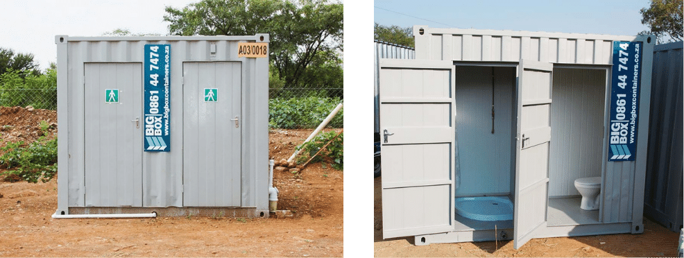 Along with storage and office requirements, ablution facilities are a very important factor to consider on any construction site. Careful planning of ablutions is vital for complying with local regulations. Our Big Box ablution containers are sturdy for work sites. The units are sized in 3m, 6m, and 12m configurations. Built-in amenities can include partitioned flush toilets, urinals, showers and basins.