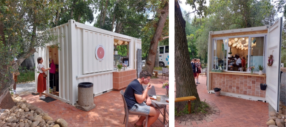 In addition to the converted container, the ladies enhanced the aesthetics of the surrounding area with swirls of rock formations, all retrieved from the flowing Eerste River next to Eerste Kafee.