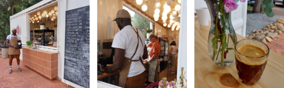 Eerste Kafee has been a blessing to many Stellenbosch residents since its inception. Their clientele includes Paul Roos, Rhenish and Bloemhof’s parents during school commutes, joggers, cyclists and dog walkers who stroll along the Eerste River to name a few. Regular customers are undoubtedly returning because of the unwavering commitment and love these ladies, together with their energetic barista, Evans Kangonga show with their friendly service and well-rounded, full-bodied cups of coffee. Their logo also resembles the year rings of a tree’s trunk, proof of their endurance during their years of ease and years of difficulty in reaching their dream. Lerine and Simone also explain that Eerste Kaffee is the first of a series of coffee container shops they plan to open.