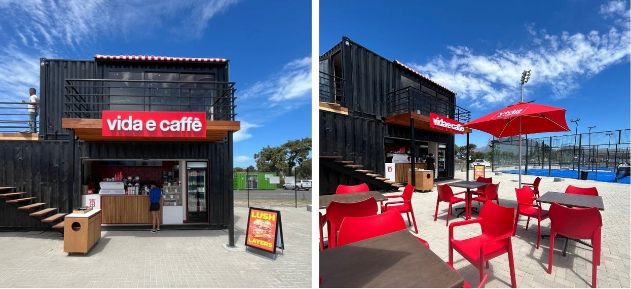 At the heart of this transformation is the on-site Vida e Caffè coffee shop, a striking Big Box Containers conversion. With a sleek service area, elegant lighting, and an inviting upper deck, it’s the perfect spot for players and spectators to relax while enjoying a fresh cup of coffee and cheering on their friends.