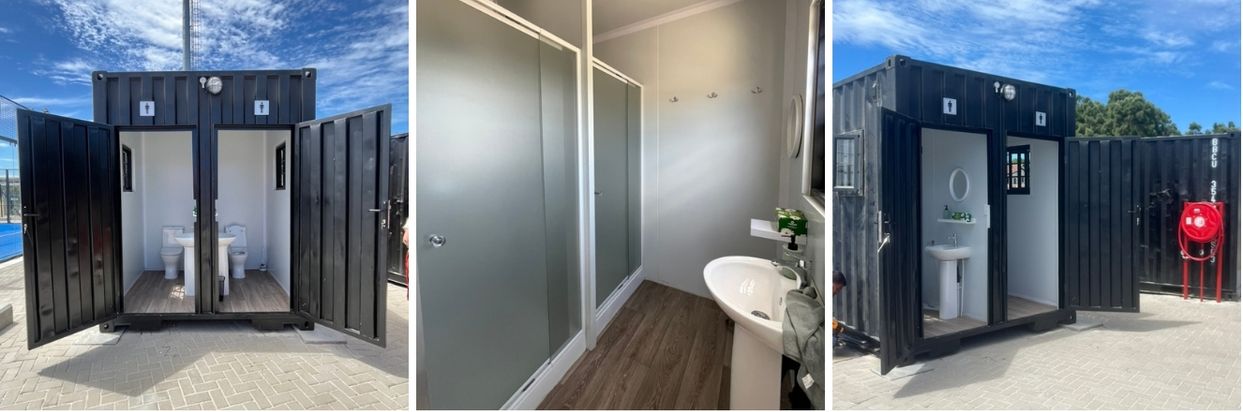 But that’s not all! Big Box Containers has also revolutionised the venue’s ablution facilities, crafting a fully-equipped space with showers, dressing rooms, toilets, and basins. This thoughtful converted container addition ensures that players can refresh and unwind after an exhilarating match, making the facility not just a place to play but a premium sporting destination.